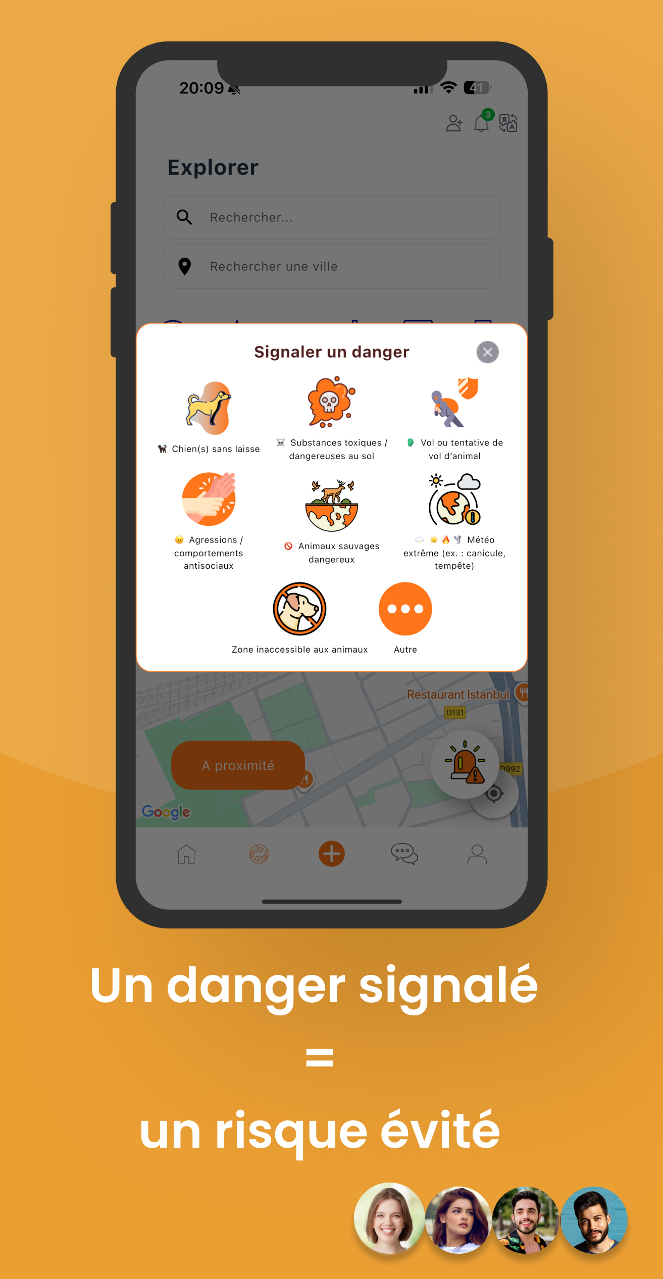 Signalisations et dangers potentiels… Grâce à la communauté, tu sais instantanément où ton compagnon est en sécurité. En un coup d’œil, repère les zones à risque autour de toi et adapte tes balades pour éviter les mauvaises surprises. Simple, fiable et pratique au quotidien, AvisPets Alert transforme chaque sortie en moment serein pour toi et ton animal.